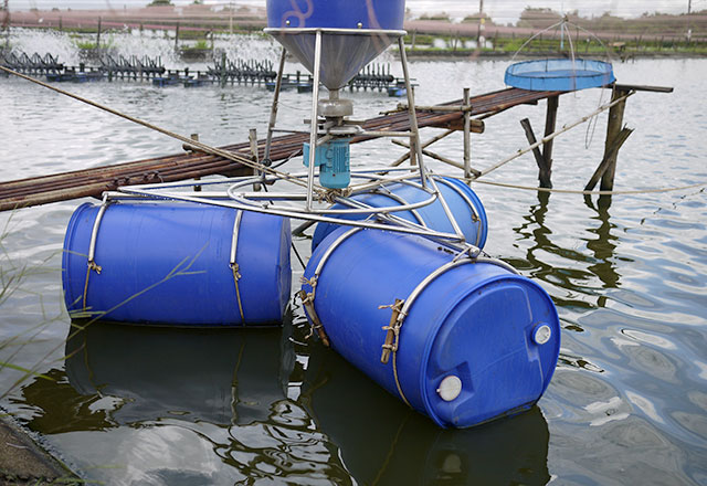 Intensive shrimp farm design and operation, clean larvae, shrimp toilet, automatic feeder and proper aeration are necessary.